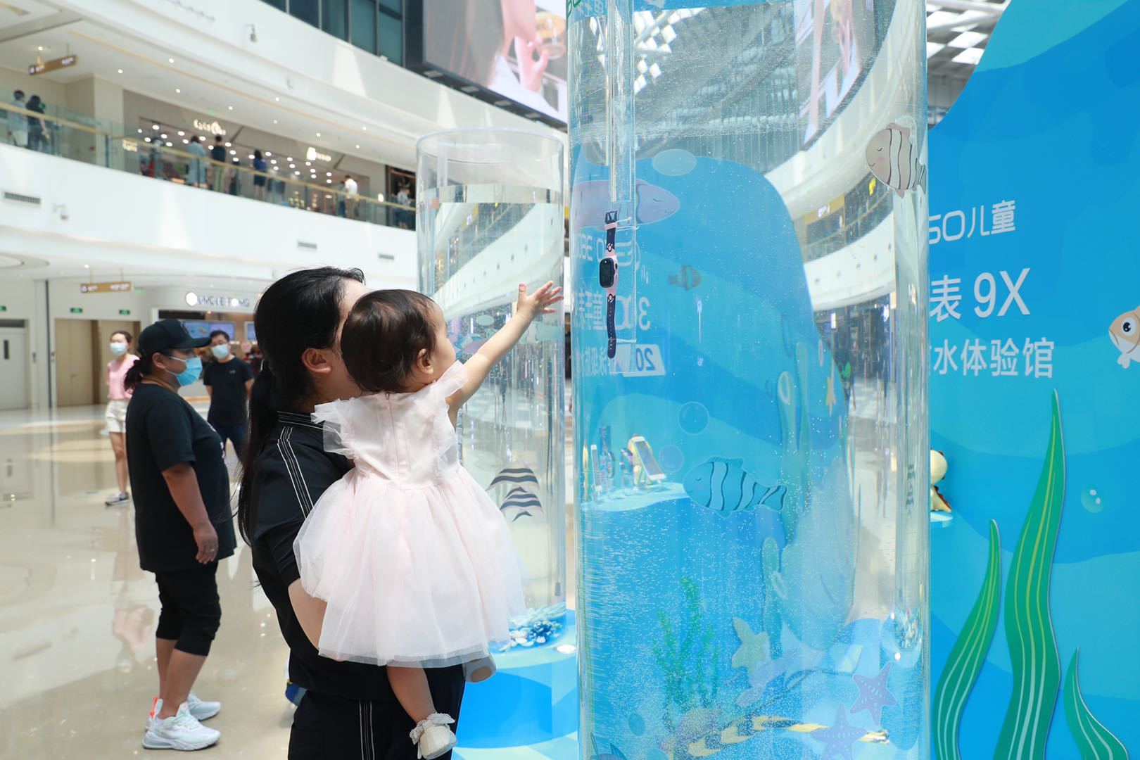 为了满足孩子们的好奇心,一边的工作人员会用通俗易懂的语言向大家介绍20米级别防水的原理。在这炎炎夏日,孩子们不仅开拓了眼界,还能从中学到很多科技小知识。