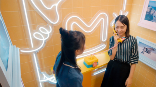 2019年7月初,马蜂窝旅游网将北京金融街一栋写字楼的电梯,打造成了一个充满惊喜的奇幻旅行空间。电梯四周挂满了马蜂窝用户拍摄于世界各地的旅行照片,最引人注目的是一部居中摆放的复古造型电话。当形形色色的职场青年、保洁阿姨、快递小哥走入电梯,电话铃突然响起,冰岛的流水声、欧洲的钟声、蒙古草原的风声等来自世界各地的美妙声音,便会通过话筒流入耳朵,成为人们平凡一天的小小惊喜。