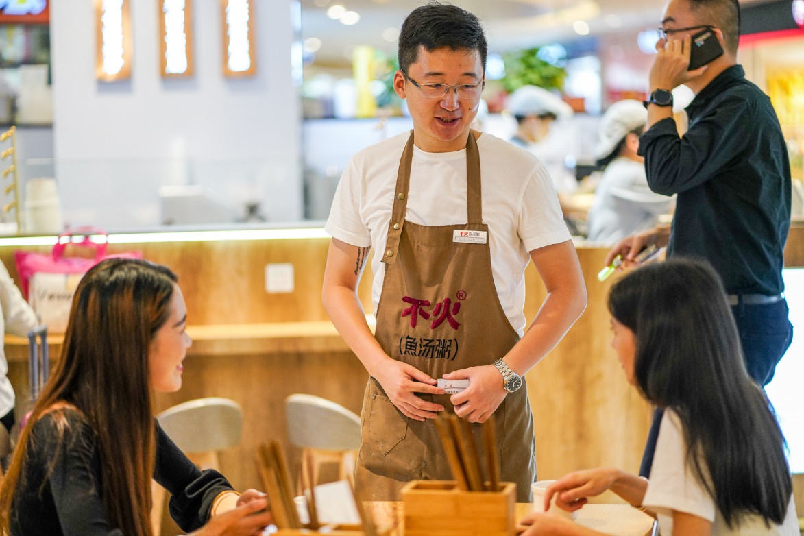 据了解,彭昊航的“不火鱼汤粥”今年6月在银泰城店全新亮相。短短二个月时间,没做任何营销推广仅靠口碑,已成为银泰城餐饮人气王。彭昊航说,“川菜不止麻辣。我就是想用这碗鱼汤粥,让成都上班族有个好吃养胃的新选择!”