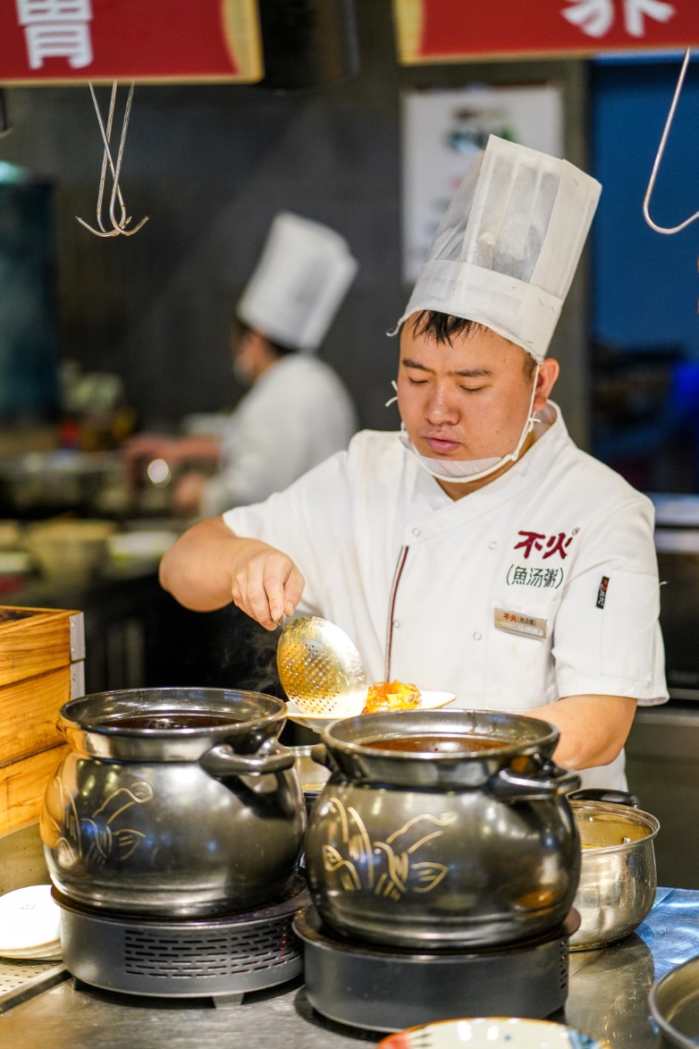 据了解,“鱼汤粥”是一种分锅熬制鲫鱼原汤与香米粥底,然后合二为一再加入鲜鱼片、皮蛋、山药等新鲜食材,最后快速出粥的全新川式粥品熬制工艺。