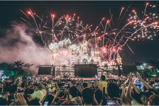 ▲沈阳方特的夜场烟花吸引大批游客观赏和拍照。
