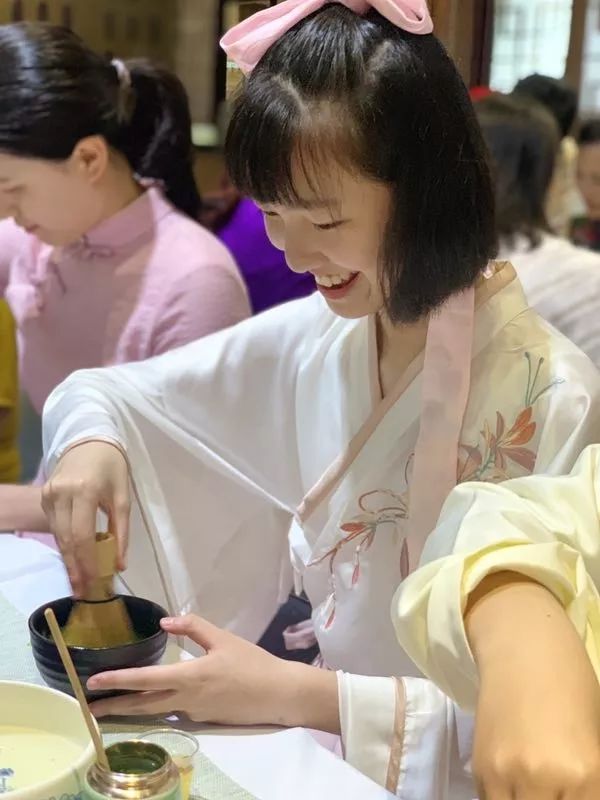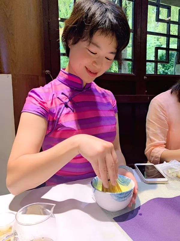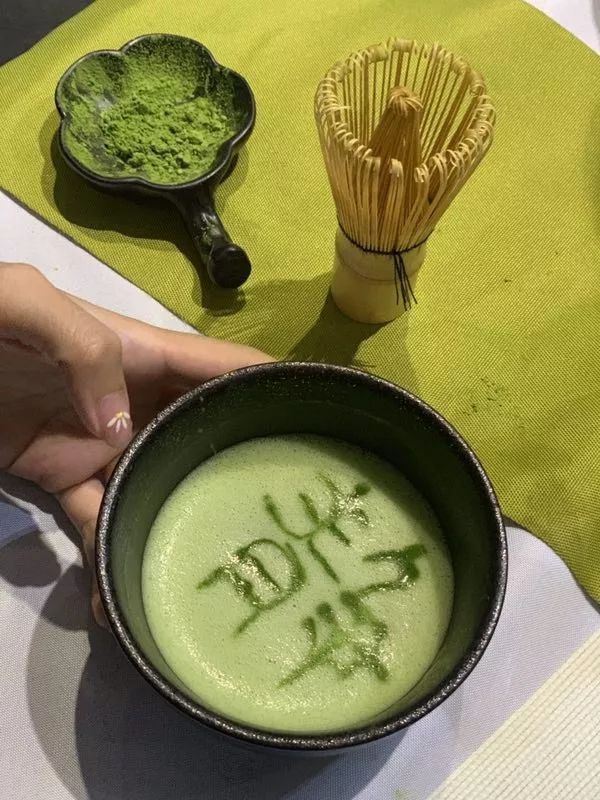这就是传统抹茶的饮用方式,打抹茶。随着茶筅的搅打,嘉宾们打出一碗碗碧绿清香的茶汤,东方茶韵滢滢而出。