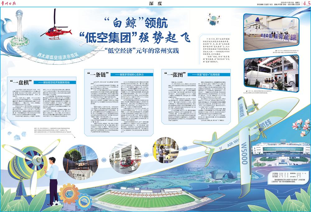 “白鲸”领航,常州“低空集团”蓄力振翼,在“低空经济”万亿新“蓝海”强势起飞。